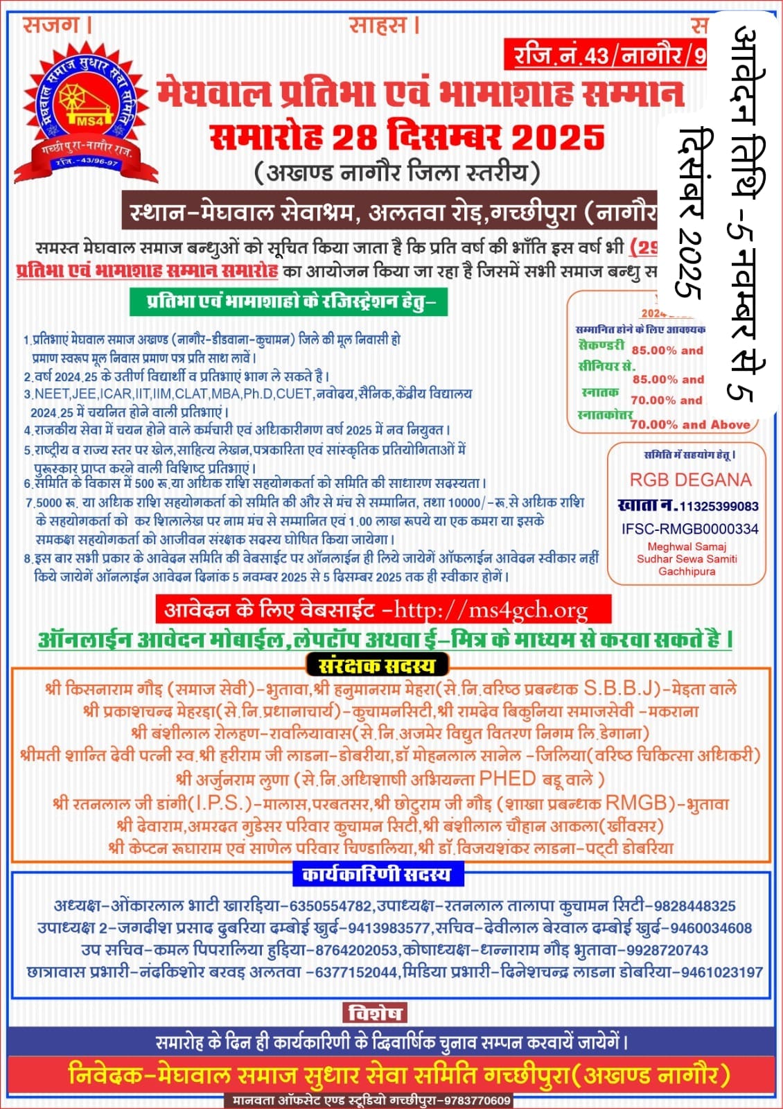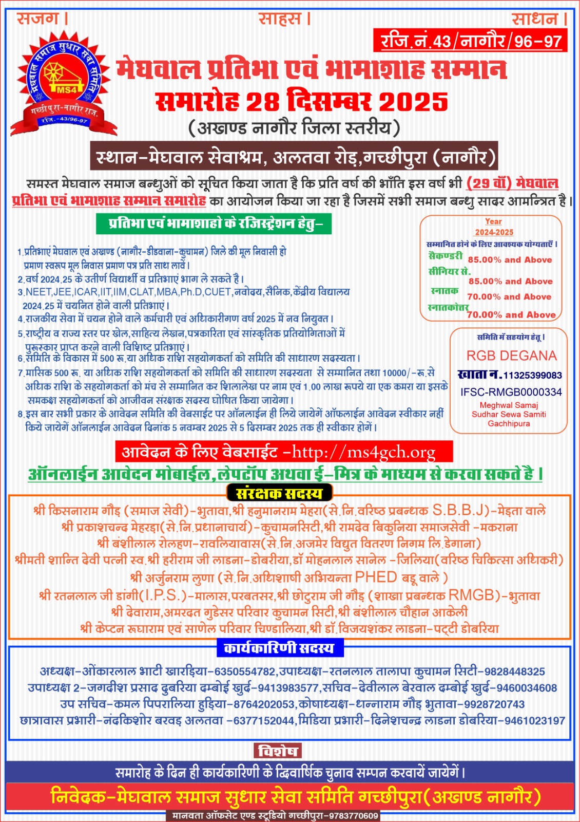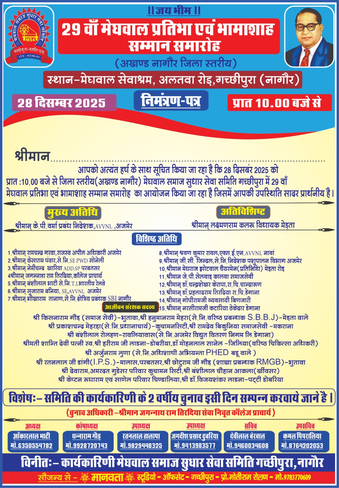 26वाँ मेघवाल प्रतिभा सम्मान समारोह गच्छीपुरा